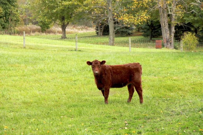 Keywords: calf cow brown cow farm farm animal bovine green field meadow