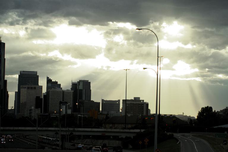 Keywords: calgary sunset downtown alberta canada skyline city skyscrapers cities buildings summer urban godrays cityscape architecture sky night scene skyscraper dusk evening