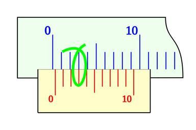 Keywords: Calibre h0030.svg Funcionamiento de un calibre Vernier/Nonio Own 2007-06-29 User HiTe GFDL SVG Nonio