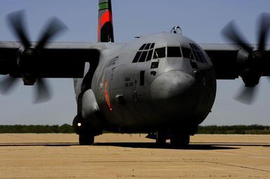 Keywords: California Air National Guard fire-fighting C-130J Hercules.jpg en A C-130J Hercules from the 146th Airlift Wing California Air National Guard taxis into the pits during fire fighting operations at Dyess Air Force Base Texas April 28 2011 The C-130 is equipped with the Modular Airborne Firefighting System which is capable of dispensing 3 000 gallons of water or fire retardant in under five seconds 2011-04-28 http //www flickr com/photos/usairforce/5687614815/in/photostream/ Staff Sgt Eric Harris PD-USGov Uploaded with UploadWizard C-130J Hercules United States Air Force Aerial firefighting in the United States Modular Airborne FireFighting System Aerial firefighting in Texas 146th Airlift Wing California Air National Guard |