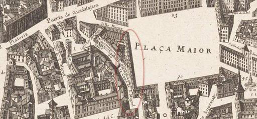 Keywords: Calle de la Cava de San Miguel. Plano de Texeira.jpg Plano de Madrid en el siglo XVII Detalle de la calle de la Cava de San Miguel junto a la Plaza Mayor http //bdh-rd bne es/viewer vm id 0000061128 Biblioteca Digital Hispánica 1656 Pedro Teixeira PD-old-100 Cava de San Miguel Madrid Croppings of Pedro Teixeira's Topographia de la Villa de Madrid 1656 |