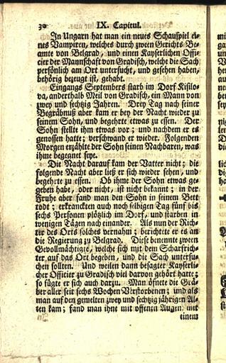 Keywords: Calmet – Gelehrte Verhandlung der Materi, Von Erscheinungen der Geistern, Und denen Vampiren in Ungarn, Mahren etc – Teil II – 030.jpg 029 031