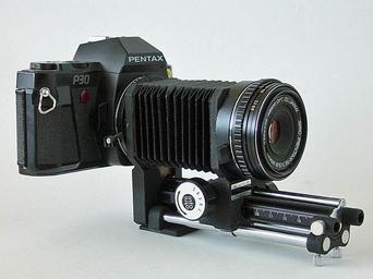 Keywords: Camera balg lens.jpg pen fotocamera met balg en lens own 2007-10-06 Arend041 Macro photography technique Pentax P30 Camera bellows Taken with Panasonic Lumix DMC-LS2 SMC Pentax-M 40mm F2 8