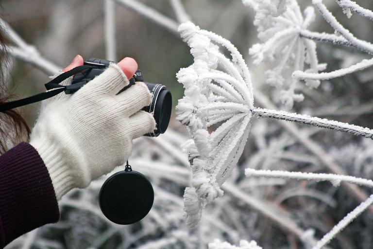 Keywords: camera winter frozen icing whites frost cold hand flower gloves
