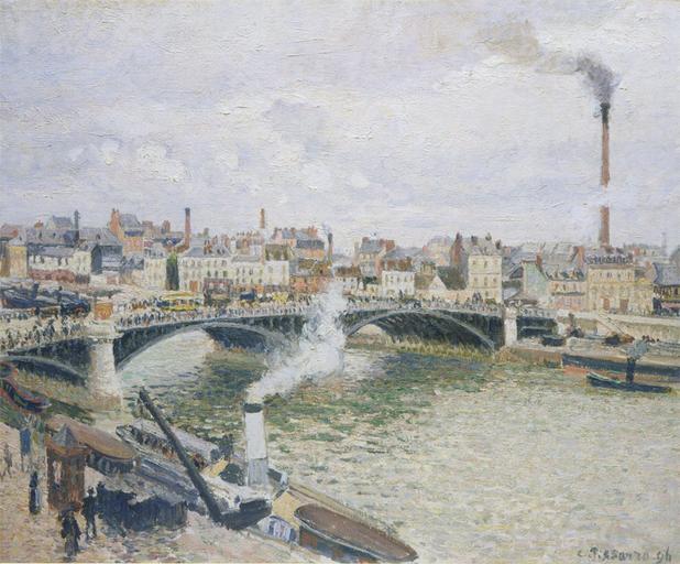 | Keywords: Camille Pissarro - Les Ponts Boieldieu à Rouen, matin, temps mouillé 1140.jpg Artwork Q19906270 creator Camille Pissarro fr Camille Pissarro žLe Pont Boieldieu à Rouen matin temps mouillé 1896 Metropolitan Museum of Art depuis 1980 de Camille Pissarro Hafen Boieldieu in Rouen am Morgen bei trüben Wetter žLe Pont Boieldieu à Rouen matin temps mouillé 1896 Im Metropolitan Museum of Art seit 1980 Ausschnitt 1896 oil canvas cm 54 3 65 1 Institution Metropolitan Museum of Art object history acquired 1980 exhibition history credit line Bequest of Grégoire Tarnopol 1979 and Gift of Alexander Tarnopol 1980 accession number 1980 21 1 http //www metmuseum org/collection/the-collection-online/search/437308 www metmuseum org PD-old-100 Uploaded with UploadWizard Rouen by Camille Pissarro Collections of the Metropolitan Museum of Art 1896 paintings by Camille Pissarro Bridges in Rouen |
