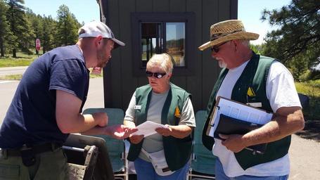 | Keywords: wildfire managed fire managedfire mormon lake mormonlake flagstaff ranger district flagstaffrangerdistrict coconino national forest coconinonationalforest forest forest service forestservice flagstaff flagstaff, az flagstaffaz arizona camillo fire camillofire outdoor Andrew Hostad provides hosts Pam and Jim at the Lake Mary Dam with information about nearby Camillo Fire.   Fires such as the Camillo Fire help clean and remove down and dead forest fuels, increasing the safety for communities and the lessening the threat of severe wildfires in the area.   Photo taken June 18, 2015 by Liza Simmons, Public Information Officer, USFS.  For more information, visit Camillo Fire [Inciweb] and the Coconino National Forest Andrew Hostad provides hosts Pam and Jim at the Lake Mary Dam with information about nearby Camillo Fire.   Fires such as the Camillo Fire help clean and remove down and dead forest fuels, increasing the safety for communities and the lessening the threat of severe wildfires in the area.   Photo taken June 18, 2015 by Liza Simmons, Public Information Officer, USFS.  For more information, visit Camillo Fire [Inciweb] and the Coconino National Forest |