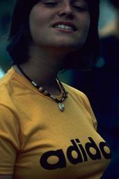 Keywords: Camp nurse BandAid.jpg Scouts Canada Toronto contingent to the 4th Pentathlon Jamboree Fredericton New Brunswick User WayneRay and Harry Gatley Quartermasters for the Jamboree Windfield Photographic Collection POB 340 Stn B London Ontario Canada N6A 4W1 1976 Wayne Ray granted PD 1976 Scouts Canada Pentathlon Jamboree Fredericton New Brunswick T-shirts with texts Women wearing yellow T-shirts |