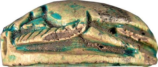 Keywords: Canaanite - Scarab with Walking Lion Design - Walters 4236 - Left.jpg The ancient Egyptians believed that the dung beetle the Scarabaeus sacer was one of the manifestations of the sun god Representations of these beetles were used as amulets and for ritual or administrative purposes This scarab displays on its bottom the motif of a walking lion The mouth of the animal is wide open and the tail raised upon its back A sun disk appears below its head an nb-basket below its belly a bush between its hindlegs and further floral elements behind its body The lion figure fills nearly the whole space; only in front between and behind its extremities is some space to convey the environment The figure of the lion has a short body a large head and slim legs with very large paws The size and round shape of these paws correspond to the form of the sun disk The layout is balanced and tightly packed the figure of the lion and the other elements fill the whole space and there is empty space only between the frontlegs of the lion The head of the lion is on the bottom of the head segment of the scarab The highest point of the back is the pronotum dorsal plate of the prothorax Two side-notches at shoulder height which differ in depth and are not totally aligned define the partition between pronotum and elytron wing cases The triangular head has incised borderlines; the irregular side plates have side-notches and the four times serrated clypeus a short central base notch The raise extremities have natural form and diagonal hatch lines for the tibial teeth and pilosity hair ; the background is deeply hollowed out The oval base is symmetrical and the drill-hole openings framed The scarab is longitudinally pierced was originally mounted or threaded and functioned as a protective amulet with royal connotation Particularly it refers to divine royal power lion and solar presence sun disc as a life spending force plants and should assure protection and renewal for its owner There are several parallels for this motif on the bottom of scarabs The type with an open mouth is typical for examples from Palestine Lion icons have royal and heavenly connotations and the sub-icons specify or modify the exact meaning ca 1648 1539 BC Second Intermediate; late MB IIB light beige steatite with green-blue glaze cm 0 9 1 5 2 1 accession number 42 36 34037 Henry Walters Baltimore date and mode of acqusition unknown Walters Art Museum Henry Walters Acquired by Henry Walters place of origin Palestine Walters Art Museum license Ancient Near East art in the Walters Art Museum Canaanite art Media contributed by the Walters Art Museum needs category review |