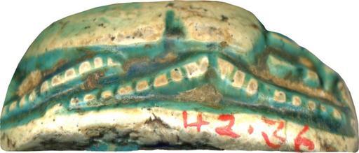 Keywords: Canaanite - Scarab with Walking Lion Design - Walters 4236 - Right.jpg The ancient Egyptians believed that the dung beetle the Scarabaeus sacer was one of the manifestations of the sun god Representations of these beetles were used as amulets and for ritual or administrative purposes This scarab displays on its bottom the motif of a walking lion The mouth of the animal is wide open and the tail raised upon its back A sun disk appears below its head an nb-basket below its belly a bush between its hindlegs and further floral elements behind its body The lion figure fills nearly the whole space; only in front between and behind its extremities is some space to convey the environment The figure of the lion has a short body a large head and slim legs with very large paws The size and round shape of these paws correspond to the form of the sun disk The layout is balanced and tightly packed the figure of the lion and the other elements fill the whole space and there is empty space only between the frontlegs of the lion The head of the lion is on the bottom of the head segment of the scarab The highest point of the back is the pronotum dorsal plate of the prothorax Two side-notches at shoulder height which differ in depth and are not totally aligned define the partition between pronotum and elytron wing cases The triangular head has incised borderlines; the irregular side plates have side-notches and the four times serrated clypeus a short central base notch The raise extremities have natural form and diagonal hatch lines for the tibial teeth and pilosity hair ; the background is deeply hollowed out The oval base is symmetrical and the drill-hole openings framed The scarab is longitudinally pierced was originally mounted or threaded and functioned as a protective amulet with royal connotation Particularly it refers to divine royal power lion and solar presence sun disc as a life spending force plants and should assure protection and renewal for its owner There are several parallels for this motif on the bottom of scarabs The type with an open mouth is typical for examples from Palestine Lion icons have royal and heavenly connotations and the sub-icons specify or modify the exact meaning ca 1648 1539 BC Second Intermediate; late MB IIB light beige steatite with green-blue glaze cm 0 9 1 5 2 1 accession number 42 36 34037 Henry Walters Baltimore date and mode of acqusition unknown Walters Art Museum Henry Walters Acquired by Henry Walters place of origin Palestine Walters Art Museum license Ancient Near East art in the Walters Art Museum Canaanite art Media contributed by the Walters Art Museum needs category review |