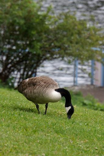 Keywords: canada goose branta canadensis goose big bird eating summer