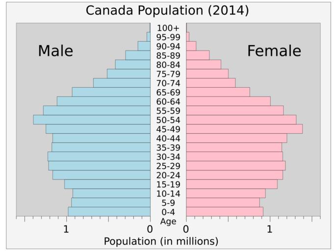 Keywords: Canadapop.svg translate yes en Current population pyramid of Canada 2014 from UN estimates World Population Prospects http //esa un org/unpd/wpp/Excel-Data/population htm The 2012 Revision 2014-08-11 own Delphi234 cc-zero Uploaded with UploadWizard Population pyramids of Canada |