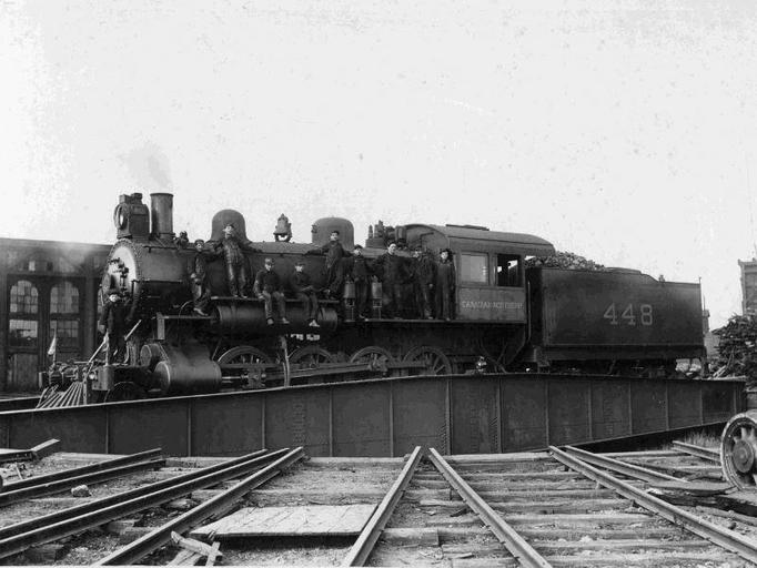 | Keywords: transportation trains train tracks traintracks canadian northern railway canadiannorthernrailway railway roundhouse steam engine steamengine ontario canada history blackandwhite monochrome railroad locomotive vehicle train outdoor sport black and white Date: Early 1900's Description: This photograph shows train no. 448 and its crew relaxing at a roundhouse before taking off for their next stop. A rail line was laid to connect the prairies to the Lakehead in the early 1900's to transport grain. The Winnipeg-Port Arthur line was completed in December of 1901. Accession No.: 983.86.146 Date: Early 1900's Description: This photograph shows train no. 448 and its crew relaxing at a roundhouse before taking off for their next stop. A rail line was laid to connect the prairies to the Lakehead in the early 1900's to transport grain. The Winnipeg-Port Arthur line was completed in December of 1901. Accession No.: 983.86.146 |