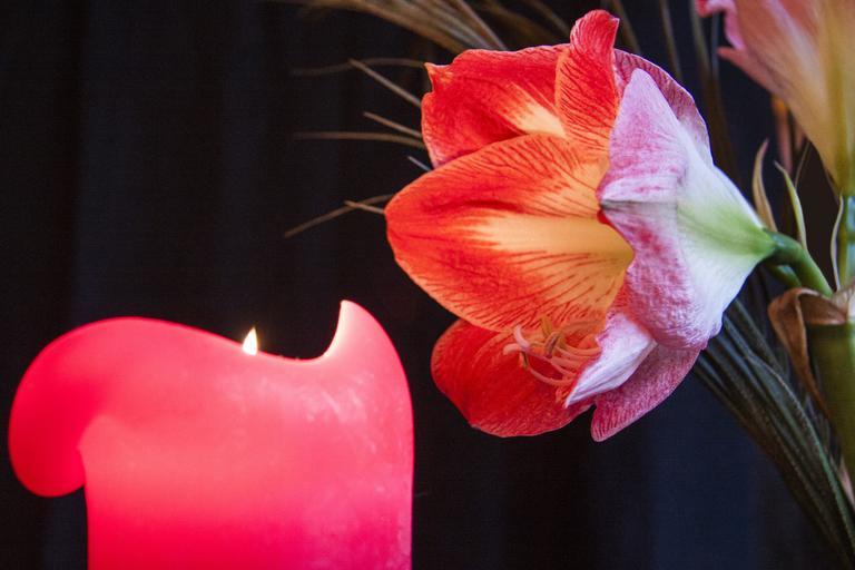 Keywords: candle advent candlelight amaryllis flower plant botany doldiger pollen close early red pink