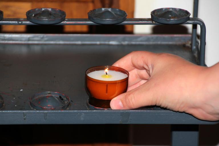 Keywords: candle flame light candlestick in the church hand stand candle faith hope spiritual