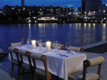 Keywords: candle light dinner eat table dinner invitation covered board outlook river night city romantic