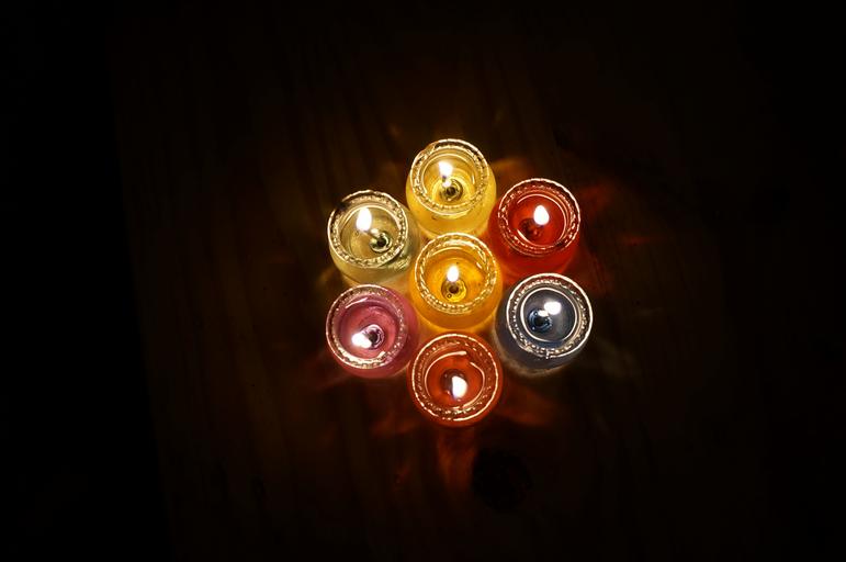 Keywords: candles lights in the dark flame candlelight dark night colorful candles lighting candles