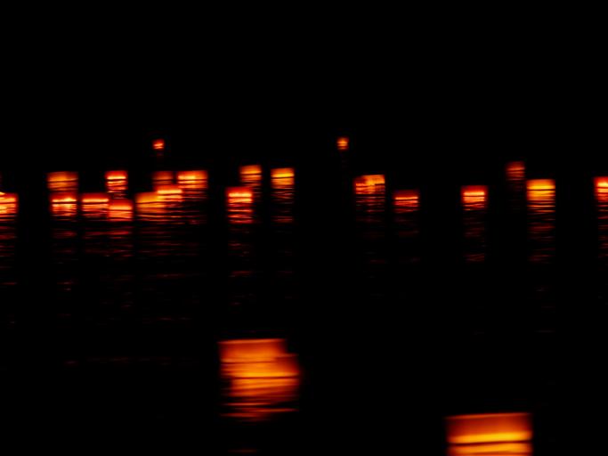 Keywords: candles lights river swim romance mood love long exposure atmosphere evening night candlelight heat