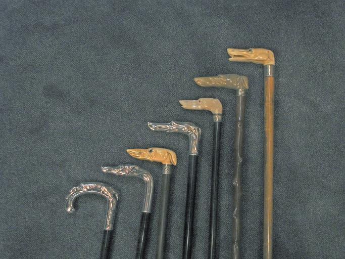 Keywords: Canes with greyhound heads, Paris.jpg late 19th and early 20th C Silver pewter bone or plastic heads on cane or wood Cane shop in Le Louvre des Antiquaires Henry Townsend PD-old-100 Photo 2 place du Palais Royal 1er Paris 20th-century greyhounds in art Greyhounds in art alone Canes Pewter |