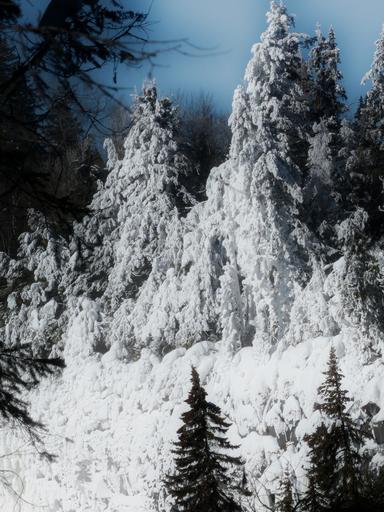 Keywords: canim falls british columbia canada frosted tree forest canyon waterfall landscape nature scenery ice cold bitter cold countryside winter season snow ice