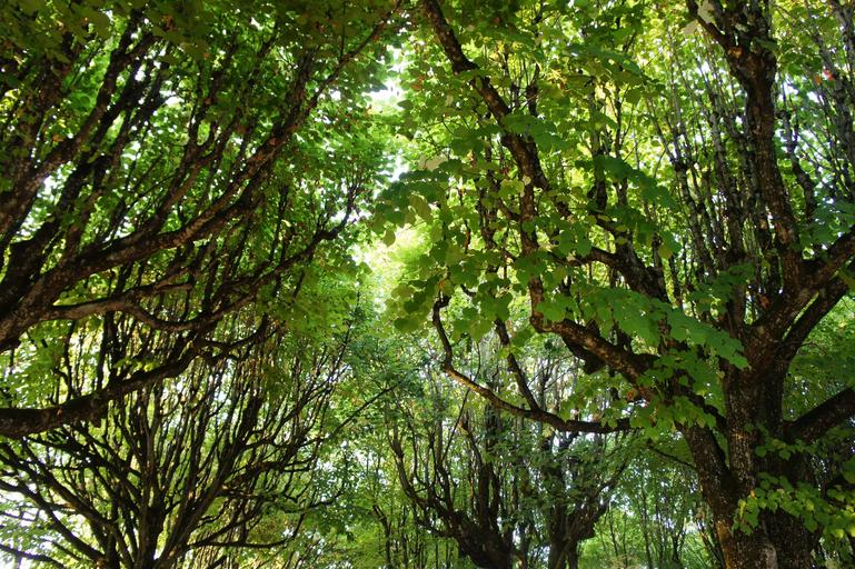 Keywords: canopy leaves green color shades of green green green tree branches trees foliage upward