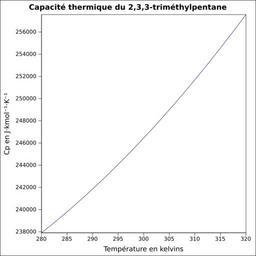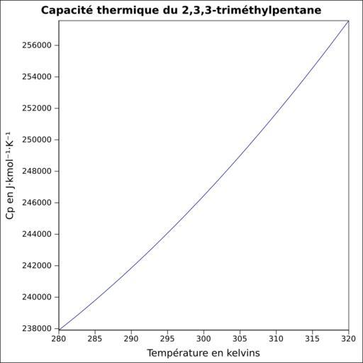 Keywords: Capacité thermique 2,3,3-triméthylpentane.svg fr Capacité thermique liquide calculée d'après <br/> Robert H Perry et Donald W Green Perry's Chemical Engineers' Handbook McGraw-Hill USA 1997 7e éd 2400 p ISBN 0-07-049841-5 p 2-170 own Epop 2010-06-28 Created with Gnumeric Heat capacity |