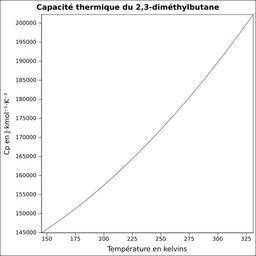 Keywords: Capacité thermique 2,3-diméthylbutane.svg fr Capacité thermique liquide calculée d'après <br/> Robert H Perry et Donald W Green Perry's Chemical Engineers' Handbook McGraw-Hill USA 1997 7e éd 2400 p ISBN 0-07-049841-5 p 2-170 own Epop 2010-06-28 Created with Gnumeric Heat capacity |