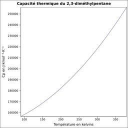 Keywords: Capacité thermique 2,3-diméthylpentane.svg fr Capacité thermique liquide calculée d'après <br/> Robert H Perry et Donald W Green Perry's Chemical Engineers' Handbook McGraw-Hill USA 1997 7e éd 2400 p ISBN 0-07-049841-5 p 2-170 own Epop 2010-06-28 Created with Gnumeric Heat capacity |