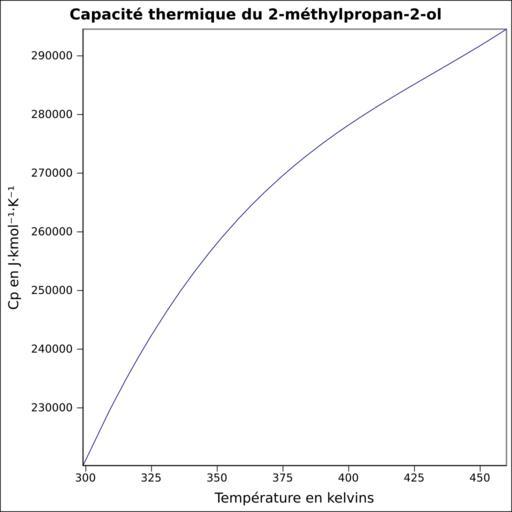 Keywords: Capacité thermique 2-méthylpropan-2-ol.svg fr Capacité thermique liquide calculée d'après <br/> Robert H Perry et Donald W Green Perry's Chemical Engineers' Handbook McGraw-Hill USA 1997 7e éd 2400 p ISBN 0-07-049841-5 p 2-170 own Epop 2010-06-28 Created with Gnumeric Heat capacity |