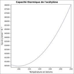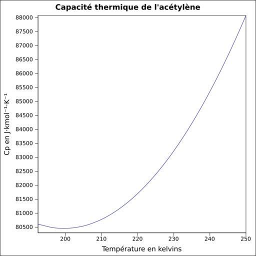 Keywords: Capacité thermique acétylène.svg fr Capacité thermique liquide calculée d'après <br/> Robert H Perry et Donald W Green Perry's Chemical Engineers' Handbook McGraw-Hill USA 1997 7e éd 2400 p ISBN 0-07-049841-5 p 2-170 own Epop 2010-06-28 Created with Gnumeric Heat capacity |
