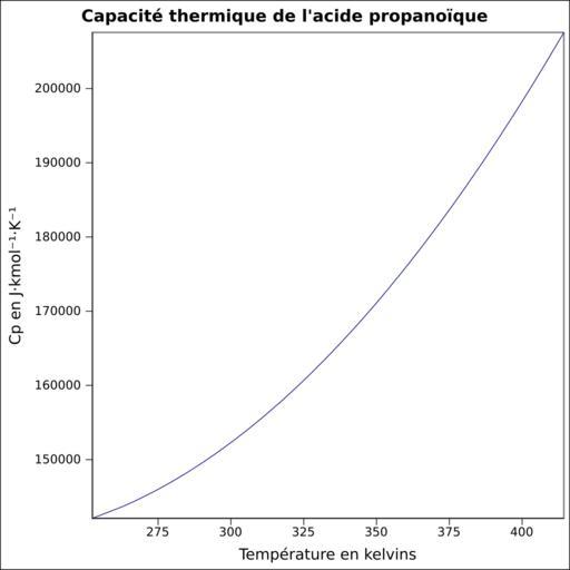 Keywords: Capacité thermique acide propanoïque.svg fr Capacité thermique liquide calculée d'après <br/> Robert H Perry et Donald W Green Perry's Chemical Engineers' Handbook McGraw-Hill USA 1997 7e éd 2400 p ISBN 0-07-049841-5 p 2-170 own Epop 2010-06-28 Created with Gnumeric Heat capacity |