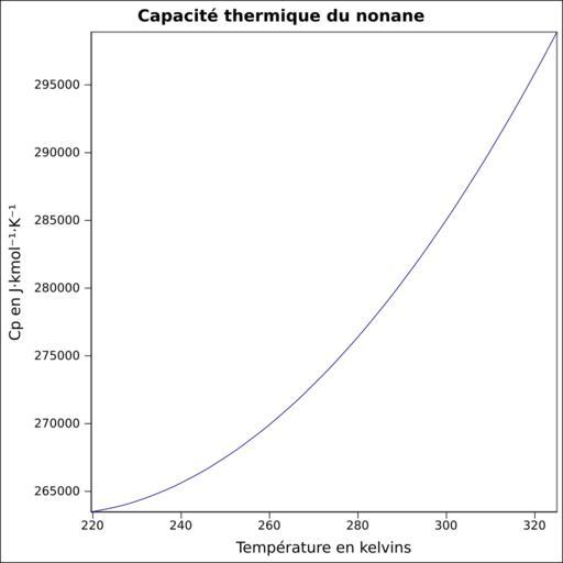 Keywords: Capacité thermique nonane.svg fr Capacité thermique liquide calculée d'après <br/> Robert H Perry et Donald W Green Perry's Chemical Engineers' Handbook McGraw-Hill USA 1997 7e éd 2400 p ISBN 0-07-049841-5 p 2-170 own Epop 2010-06-28 Created with Gnumeric Heat capacity |