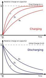 Keywords: Capacitor Charge-Discarge.svg A diagram to show the charge on the plates of a capacitor as it charges and discharges through a resistance Own work made in Inkscape 0 43 05/06/06 jjbeard PD Capacitor diagrams
