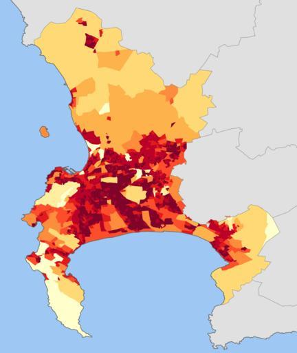 Keywords: Cape Town 2001 population density map.svg ffffcc <1 inhabitant/km² ffeda0 1 “3 inhabitants/km² fed976 3 “10 inhabitants/km² feb24c 10 “30 inhabitants/km² fd8d3c 30 “100 inhabitants/km² fc4e2a 100 “300 inhabitants/km² e31a1c 300 “1000 inhabitants/km² bc0026 1000 “3000 inhabitants/km² 800026 >3000 inhabitants/km² Statistics South Africa's Census 2001 is the source of the basic population data The map results from my own processing of the data Htonl 2010-02-15 Superseded demographic maps of South Africa Maps of Cape Town Maps of metropolitan areas in South Africa The following license applies to the population data on which the map is based http //www statssa gov za/copyrightdisclaimer asp the user acknowledges Stats SA as the source of the basic data wherever they process apply utilise publish or distribute the data and also that they specify that the relevant application and analysis where applicable result from their own processing of the data The following tag applies to the map itself |