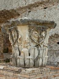 | Keywords: Capital Imperial Triclinium Villa Adriana.jpg Sculpted capital from the Imperial Triclinium at the Villa Adriana in Tivoli Chapiteau sculpté dans le Triclinium impérial de la Villa Adriana à Tivoli Own 2006-09 Jastrow Public Domain Ancient Roman capitals in Villa Adriana Ancient Roman corinthianesque capitals |
