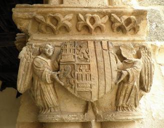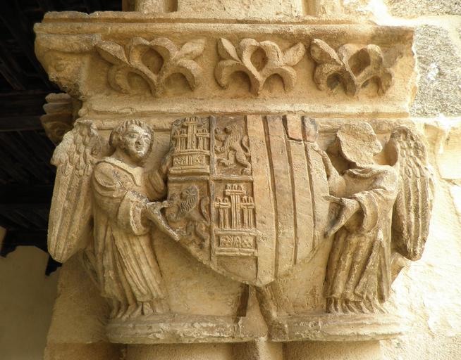 | Keywords: CapitelE10.JPG en 10th capital in easthern corridor of Santa Maria la Real de Nieva church Segovia province Spain Coat of arms of Castille and Aragon with two angels homage to King John II and his wife Mary of Aragon es 10º capitel de la galería oriental del claustro de la iglesia de Santa María la Real de Nieva en la provincia de Segovia España Escudo de armas de Castilla y Aragón con dos ángeles en homenaje al rey Juan II y su esposa la reina María de Aragón own Osado 2010 Capitals of the Cloister of Santa María la Real de Nieva Maria of Aragon Queen of Castile Coats of arms of queens of Castile |