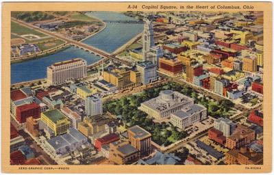 | Keywords: postcard postcards white border whiteborder white border era whiteborderera used columbus columbus, ohio columbusohio ohio aerial view aerialview downtown leveque tower levequetower leveque lincoln tower levequelincolntower a.i.u. citadel aiucitadel scioto river sciotoriver riverfront rivers river state capitol statecapitol statehouse state capitol building statecapitolbuilding landmarks 1945 1940s wwii-era wwiiera w.e. ayres weayres w.e. ayers weayers curt teich co. curtteichco curteich curteich-chicago curteichchicago c.t. art colortone ctartcolortone civic center group civiccentergroup buildings city buildings citybuildings ohio state office building ohiostateofficebuilding state office building stateofficebuilding a.i.u. tower aiutower state house ohio state house ohiostatehouse ohio state capitol ohiostatecapitol civic center civiccenter drawing photo border Description on front of card: Capitol Square, in the Heart of Columbus, Ohio No. in Series: A-34 Description on back of card: Columbus, Ohio from the air, surrounding State Capitol and Grounds. Capitol Building is constructed of Ohio gray limestone and covers about two of the 10 acres of the site in the center of the city. Published by: W.E. Ayres, Columbus, Ohio | Genuine Curteich-Chicago "C.T. Art-Colortone" post card, a tradename under Curt Teich Co., Chicago, Illinois Used. Publisher Note: Curt Teich emigrated to Chicago in 1895. He had worked as a lithographer in Lobenstein, Germany. He founded the Curt Teich Company in 1898, concentrating on newspaper and magazine printing. He was an early publisher of postcards, but he didn't begin printing them himself until 1908. According to MetroPostcard.com, "As his competition dwindled, his sales expanded and his American factories would eventually turn out more postcards than any other in the United States. " The company was best known for their wide range of advertising and postcards of North America. By the 1920s, it was producing so many postcards with borders that they became recognized as a type dubbed "White Border Cards," creating an "era." Curt Teich started using offset presses in 1907, but it took a number of years before he had offset presses made to his satisfaction, and many more years for him to perfect the method. His innovations in this printing technique directly led to the production of what we now call "linens" by the early 1930s. The company aided the war effort during the second world war by also printing many military maps. Curt Teich eventually turned management of the company over to his son, but he remained active in company operations throughout its history. Curt Teich died in 1974 and the family business was sold to Regensteiner Publishers who continued to print postcards at the Chicago plant until 1978 when the rights to the company name and processes were sold to the Irish company, John Hinde Ltd. Their California subsidiary now prints postcards under the name John Hinde Curteich, Inc. Source: www.metropostcard.com/publisherst.html Description on front of card: Capitol Square, in the Heart of Columbus, Ohio No. in Series: A-34 Description on back of card: Columbus, Ohio from the air, surrounding State Capitol and Grounds. Capitol Building is constructed of Ohio gray limestone and covers about two of the 10 acres of the site in the center of the city. Published by: W.E. Ayres, Columbus, Ohio | Genuine Curteich-Chicago "C.T. Art-Colortone" post card, a tradename under Curt Teich Co., Chicago, Illinois Used. Publisher Note: Curt Teich emigrated to Chicago in 1895. He had worked as a lithographer in Lobenstein, Germany. He founded the Curt Teich Company in 1898, concentrating on newspaper and magazine printing. He was an early publisher of postcards, but he didn't begin printing them himself until 1908. According to MetroPostcard.com, "As his competition dwindled, his sales expanded and his American factories would eventually turn out more postcards than any other in the United States. " The company was best known for their wide range of advertising and postcards of North America. By the 1920s, it was producing so many postcards with borders that they became recognized as a type dubbed "White Border Cards," creating an "era." Curt Teich started using offset presses in 1907, but it took a number of years before he had offset presses made to his satisfaction, and many more years for him to perfect the method. His innovations in this printing technique directly led to the production of what we now call "linens" by the early 1930s. The company aided the war effort during the second world war by also printing many military maps. Curt Teich eventually turned management of the company over to his son, but he remained active in company operations throughout its history. Curt Teich died in 1974 and the family business was sold to Regensteiner Publishers who continued to print postcards at the Chicago plant until 1978 when the rights to the company name and processes were sold to the Irish company, John Hinde Ltd. Their California subsidiary now prints postcards under the name John Hinde Curteich, Inc. Source: www.metropostcard.com/publisherst.html |