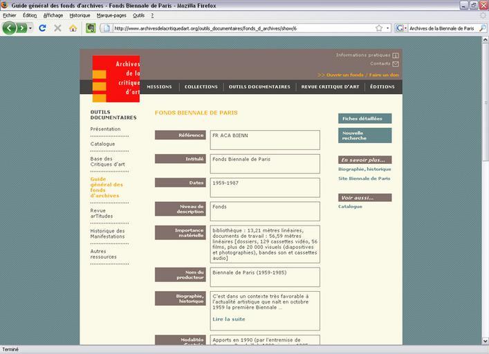 Keywords: Capture ardlbdp chateaugiro.jpg Capture du site Internet du Fonds Biennale de Paris 1959-1987 des Archives de la critique d'art Châteaugiron 2009-07-22 own assumed Biennaledeparis Biennale de Paris
