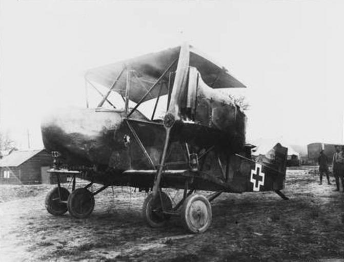 Keywords: Captured AEG G.IV without wings in 1918.jpg en The remains of a German AEG G IV bomber which was brought down in flames near Proyart Somme Picardie France A close look reveals two lanterns attached to left and right lower wing suggesting that the bomber was recovered from elsewhere and towed by road to a safe area Note the lozenge pattern camouflage applied to the fuselage; the bomb racks extending from the front of the nose to between the undercarriage; the shrapnel damage hole immediately below the forward central strut this accords with reports of the plane being hit by AA fire ; and the partial aircraft serial number evident on the lower wing strut The soldier standing behind and to the right of the AEG is wearing a slouch hat indicating this is an Australia base or depot - possibly even an airfield The AEG's engines were mounted and supported on a series of metal struts which only attached to the lower wing and undercarriage supports - you'll note the left hand one is missing probably due to AA damage or a heavy landing The AEG mounted two 260 hp Mercedes D IVa 6 cylinder in lines Also missing are both detachable swept-back outer wing panels The combination of serial number the date and the location suggest this is probably AEG G IV serial 588/17 which was hit by anti-aircraft fire and force landed in flames near Villers-Bretonneux on 16 May 1918 Villers-Bretonneux at the time was occupied by Australian troops who had only captured the town two or three weeks before The crew of three were probably taken captive if they weren't killed After capture this aircraft was assigned the British serial number G/5Bde/9 and would most probably have been shipped to the Agricultural Hall at Islington UK for evaluation as most captured aircraft were Most were scrapped by February 1919 fr Les restes d'un bombardier allemand AEG G IV ramené en flammes près de Proyart Somme Une vue rapprochée révèle deux lanternes attachées aux ailes du bas à droite et à gauche suggérant que l'appareil a été tracté d'un autre endroit pour être amené dans un lieu sécurisé A01895 1918 Australian armed forces Image copyright Copyright expired - public domain frame cropped PD-Australia AEG G IV Proyart |