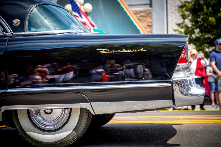 Keywords: car automobile classic packard chrome whitewall tires fender parade reflection vehicle vintage antique drive retro car history