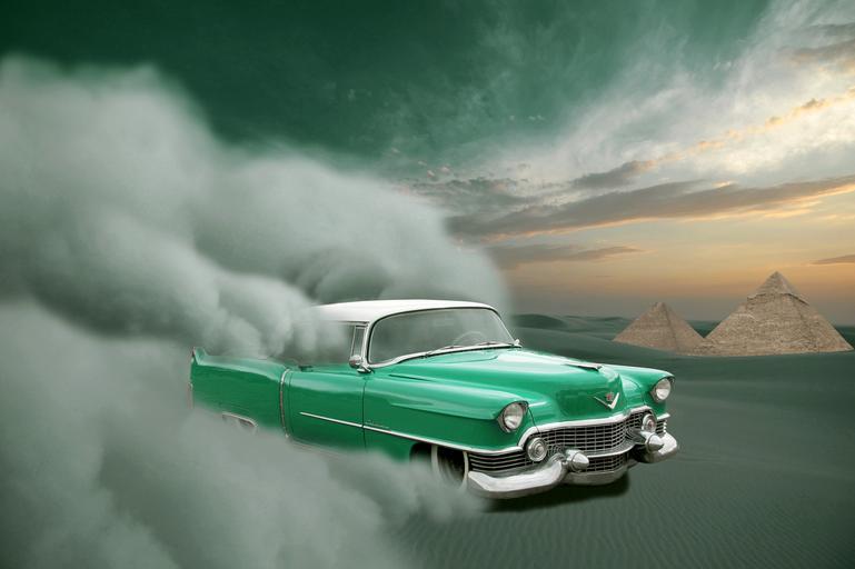 Keywords: car cadillac desert sand sandstorm sunset pyramids 50-speaker yanks americans computer and sports green evening old car