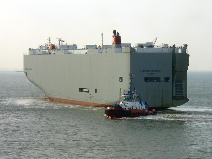 Keywords: Car carrier Florida Highway.jpg en The car carrier Florida Highway has just left the Nordschleuse ship lock in Bremerhaven and is now heading to the North Sea Tugboat RT Peter is at the stern de Das Autotransportschiff Florida Highway hat gerade die Nordschleuse in Bremerhaven verlassen und dreht jetzt Richtung Nordsee Am Heck des Schiffes ist der Schlepper RT Peter own Tvabutzku1234 2012-09-04 53 33 39 57 N 8 33 8 87 E region DE_heading W Car carriers in Bremerhaven Florida Highway ship 2008 RT Peter tugboat 2009 Cc-zero |