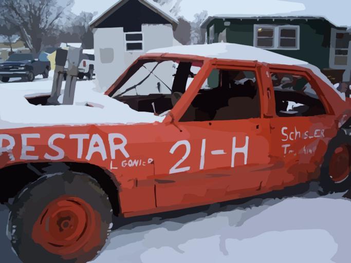 Keywords: car vehicle old transportation red automotive automobile auto snow stuck