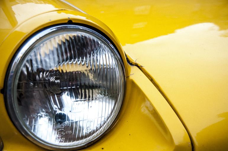 Keywords: car yellow headlight retro vintage automobile vehicle travel transportation drive close up