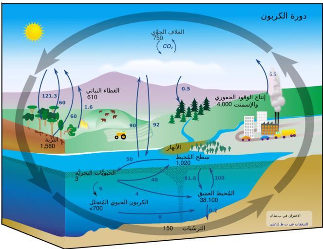 | Keywords: Carbon cycle diagram-ar.svg دورة الكربون يُظهرُ المخزون والتبادل السنوي للكربون بين غلاف الأرض الجوّي، والغلاف المائي والغلاف الأرضي بالجيجاطن- أو بلايين الأطنان- للانبعاث الكربوني GtC يُضيف حرق الوقود الأُحفوري من قِبل البشر حوالي 5 5 GtC من الكربون في السنة إلى الغلاف الجوي 2015-11-23 Derivative from this file Carbon_cycle-cute_diagram jpeg User Kevin Saff on http //en wikipedia org en wikipedia Derivative work FischX Arabic Version باسم other versions File Carbon cycle-cute diagram-german svg File Carbon cycle-cute diagram zh-hant svg File Kolobeh uhliku cs svg File Carbon cycle-cute diagram svg Translated to Arabic - عُرِّبت باسم Carbon cycle-cute diagram svg Custom license marker 2015 11 23 Carbon cycle 3D diagrams SVG ecology Graphic Lab-ar Uploaded with UploadWizard |