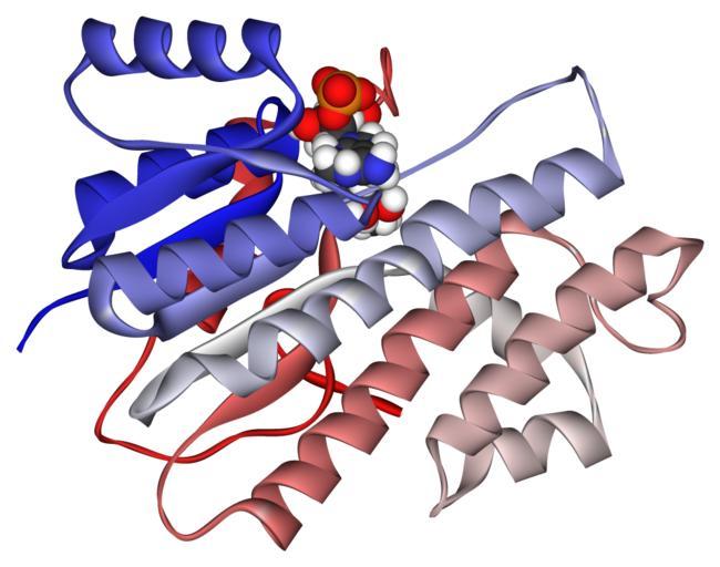 Keywords: Carbonyl reductase 1WMA.png Ribbon diagram of human carbonyl reductase 1 in complex with NADPH and a small molecule inhibitor 3- 1-tert-butyl-4-amino-1H-pyrazolo3 4-dpyrimidin-3-yl phenol not shown Colored from N- to C-terminus <br>Created using http //www accelrys com/products/downloads/ds_visualizer/index html Accelrys DS Visualizer Pro 1 7 and the GIMP From PDB http //www rcsb org/pdb/cgi/explore cgi pdbId 1WMA 1WMA <br>More information PLoS Biol 3 5 e128 2005 PMID 15799708 10 1371/journal pbio 0030128 Free full text at PubMed Central http //www pubmedcentral gov/articlerender fcgi tool pmcentrez artid 1073692 1073692 and at http //biology plosjournals org/perlserv/ request get-document doi 10 1371/journal pbio 0030128 PLoS website 2007-10-26 Fvasconcellos 17 10 28 October 2007 UTC Oxidoreductases Open Access File of the Day |