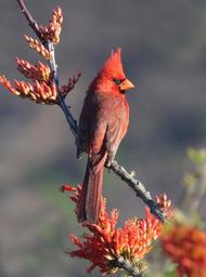 Keywords: cardinal northern male redbird wildlife bird perched feathers branch songbird