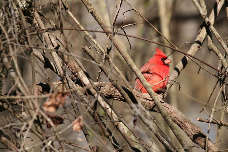 Keywords: cardinal northern male redbird wildlife bird perched feathers branch songbird