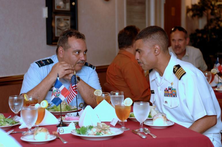 | Keywords: Caribbean Phase of Continuing Promise 2008 DVIDS122469.jpg en U S Public Health Service Capt Jose Belardo has a conversation with a military official from the Dominican Republic at a distinguished visitors reception aboard the amphibious assault ship USS Kearsarge Kearsarge is the primary platform for the Caribbean phase of the Continuing Promise 2008 humanitarian assistance mission an equal-partnership mission involving the United States Canada the Netherlands Brazil France Nicaragua Colombia Dominican Republic Trinidad and Tobago and Guyana 2008-10-15 https //www dvidshub net/image/122469 081013-N-+++++-081 2008-10-15 18 19 CARIBBEAN SEA AT SEA PD-USGov-Military-Navy USS Kearsarge LHD-3 Images from DoD uploaded by Fæ |