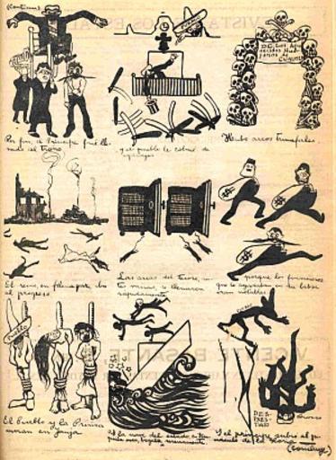 Keywords: Caricatura de Zapata 16.jpg Leyenda Los dos prÃncipes Por fin el prÃncipe fue llevado al trono y el pueblo le colmó de agasajos “Hubo arcos triunfales El rieno en finelapar iba al progreso Las arcas del tesoro antes vacÃas se llenaron rápidamente porque los financieros que lo ayudaban en su labor eran notables El Pueblo y la Prensa vivÃan en lonja y la nave del estado en tranquila mar bogaba serenamente Y el prÃncipe subió al pináculo de la gloria Hecho El caricaturista con suma ironÃa sigue haciendo un balance de los acontecimientos derivados del maderismo iniciando con el momento en que Francisco I Madero toma protesta como presidente de la República el mal manejo del erario público las dificultades con sus compañeros revolucionarios el trato que le daba la prensa y la consiguiente inestabilidad polÃtica y falta de popularidad que caracterizó buena parte de su régimen El Ahuizote sábado 23 de diciembre de 1911 año 1 número 32 página 13 1911-12-23 Orozco PD-old Caricatures of Emiliano Zapata 1911 cartoons 1910s political cartoons Mexico in the 1910s 1911 in Mexico |