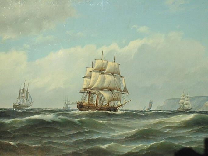 Keywords: Carl Bille - Skibe ut fra Norge.jpg Artwork Creator Carl Bille Skibe ut fra Norge a three-masted fullrigged sailing ship in the foreground and four vessels in the background a Brig and a Sailing Cutter on the right a Dutch sailing steamer behind the foreground ship and Danish frigate on the left side 1889 oil canvas cm 42 63 object history credit line accession number http //www fineartemporium com/se-Bille-CL htm www fineartemporium com PD-old-100 Carl Bille 19th-century sailing ships in paintings 1889 paintings 19th-century paintings location missing |